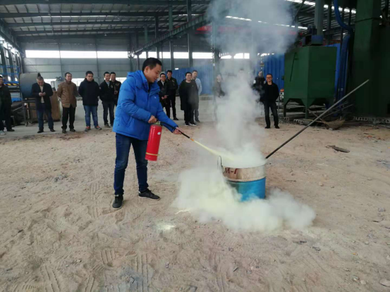 当日下午,在公司安全负责人彭翔带领下,全体员工在车间进行消防实地演练,进一步提高员工的消防防护和自救技能。