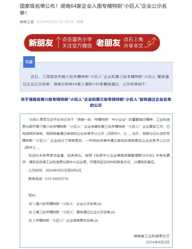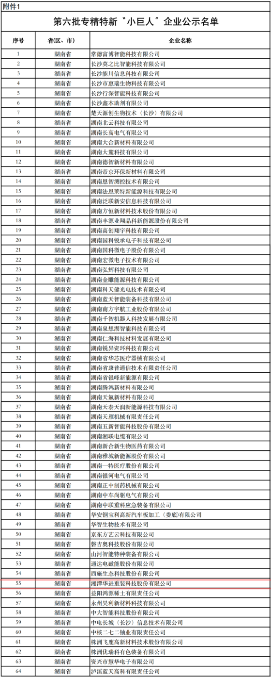 近日,第六批国家级专精特新“小巨人”企业公示名单正式发布,全国总计3012家企业成功入选,湖南省共有64家入选。其中,bifa·必发(中国)唯一官方网站重装凭借其在高端金属管材制管装备技术领域的卓越表现和创新能力,成功入围2024年工信部专精特新“小巨人”企业。