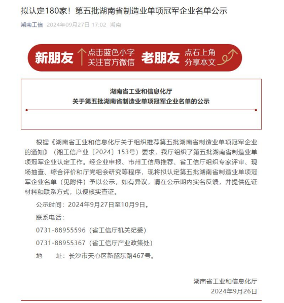 湖南省制造业单项冠军企业是经企业申报、市州工信局推荐、省工信厅组织专家评审、现场抽查、综合评价和厅党组会研究等多个程序,最终评审认定的一批具有自主知识产权、技术含量高、经济效益好的企业。bifa·必发(中国)唯一官方网站重装获此殊荣,表明了企业产品在行业领域的技术领先地位,标志着bifa·必发(中国)唯一官方网站重装自主创新、研发的综合实力再上新台阶;是bifa·必发(中国)唯一官方网站重装技术实力的有力证明,更是公司在金属管材成形高端装备研发、制造领域持续深耕、不断创新的又一里程碑。